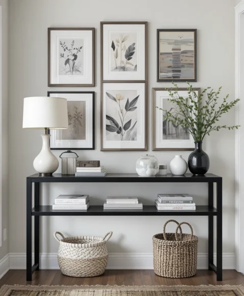 In this guide, you’ll find 26 creative black entryway table décor ideas designed to inspire stunning setups. Each idea is simple, visually appealing, and perfect for creating eye-catching arrangements that work beautifully in photos and real-life spaces.