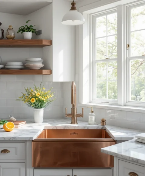 That’s exactly what a copper kitchen sink farmhouse design does—it blends rustic warmth, vintage appeal, and a touch of luxury all in one.