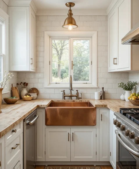 Even smaller kitchens can feature copper sinks. I like using a compact version that still delivers style. It makes the space feel special without overcrowding.