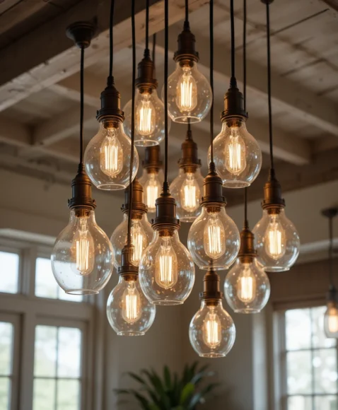 Simple glass globe pendants offer a clean yet rustic look. I imagine them grouped in clusters for visual impact. Their transparency keeps the space open while still adding charm.