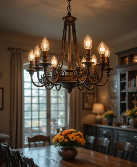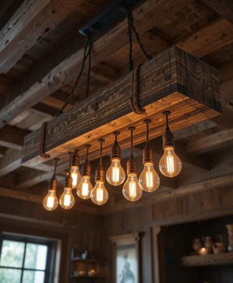 A pendant that blends chandelier elements creates a dramatic focal point. I picture multiple arms with bulbs hanging from a central fixture. It adds elegance while still keeping a rustic feel.