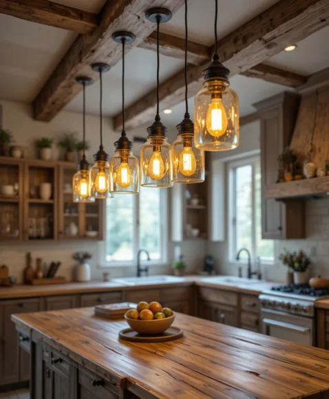 - 1. Rustic Mason Jar Pendant Lights Over Kitchen Island