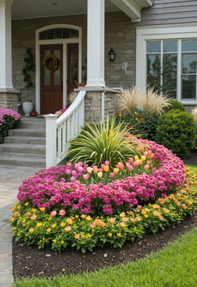 Your front yard flower bed is the first thing people see, so make it speak. Choose colors you love, shapes that fit, and plants that bring life to the space. Whether bold or soft, structured or free-flowing, there’s a style here waiting to greet guests with a smile.