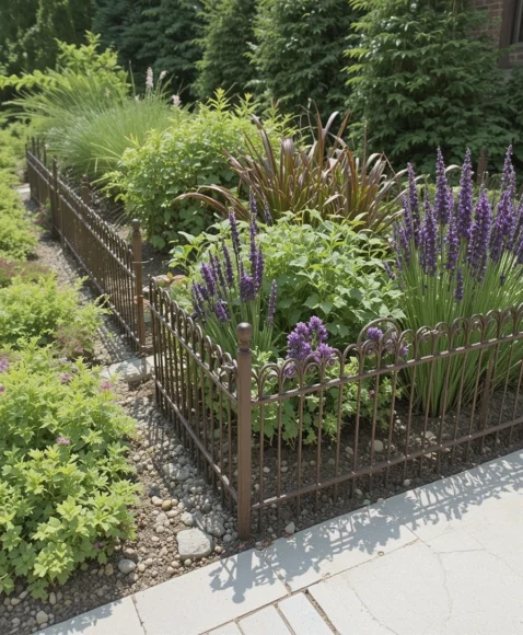 Decorative metal fence edging adds artistic detail and height to your borders. I like how it works both as a border and a small fence, keeping plants contained while adding charm. Ornate scrolls, simple bars, or vintage-inspired designs make it easy to match your home’s personality. It’s a great option for front yards where aesthetics matter. Plus, it adds just enough height to stop pets or kids from stepping into garden beds.