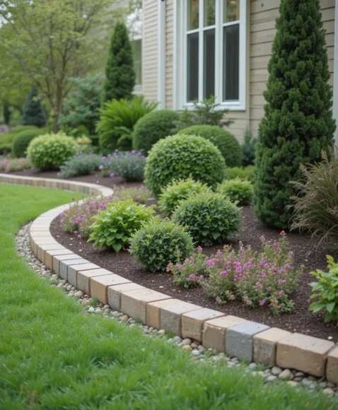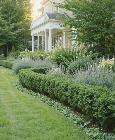 A low hedge border adds a lush, green frame that grows more beautiful over time. I enjoy how soft and classic this edging feels. Plants like boxwood, lavender, or dwarf holly work perfectly. Living edges add movement, fragrance, and life to your garden. They give your yard a high-end, manicured look while blending naturally with surrounding plants. It’s a timeless way to elevate your outdoor space.
