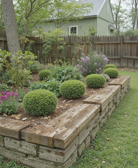 22. Railroad Tie Edging for Strong, Rustic Structure
