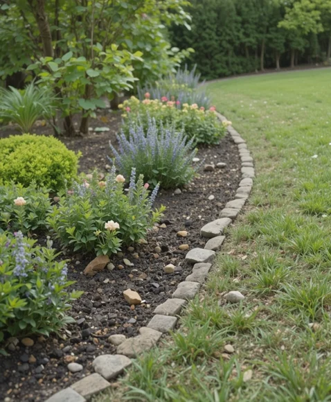 Natural stone edging adds a timeless charm that blends beautifully with any garden. I love how each stone feels unique, giving your garden character without trying too hard. Stones stay in place, handle weather well, and create a durable border for flower beds or pathways. You can choose round river stones or rough-cut slate for different looks. This style works especially well in cottage gardens, woodland settings, or homes that embrace earthy aesthetics.