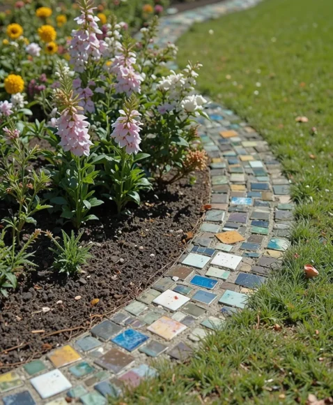 21. Mosaic Tile Edging for Color and Creativity