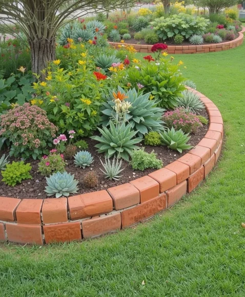 Terracotta edging adds inviting warmth and color to any garden space. I enjoy how the rich orange tones instantly brighten flower beds and pair well with herbs, succulents, and colorful blooms. Terracotta tiles or half-round pieces make the border look handcrafted and artistic. This option works especially well in sunny US states where Mediterranean-style landscaping thrives.