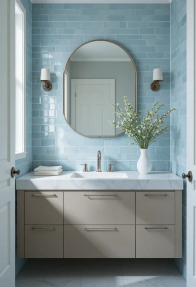 14. Baby Blue Vanity Backsplash
