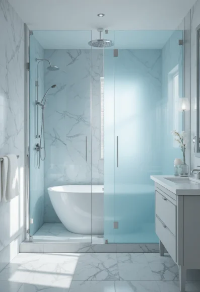 2. Frosted Blue Glass Shower Panels