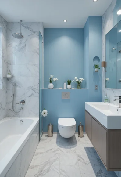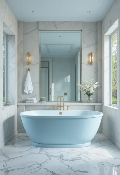 There’s something about light blue that brings calm to a room. It feels open, fresh, and airy—especially in bathrooms.
