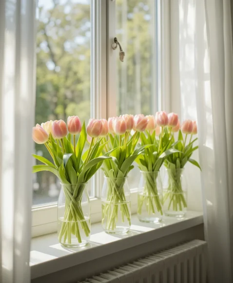 20. Fresh Tulip Window Sill Decor